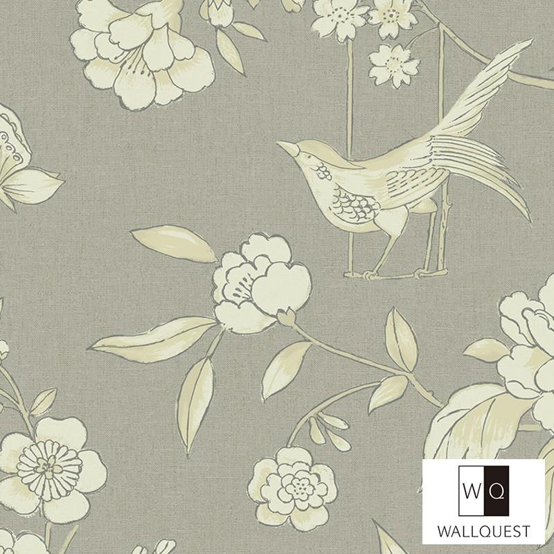 壁紙 張り替え おしゃれ 輸入 おすすめ シノワズリ 鳥 バード 鳥 Ch 花柄 グレー ウォールクエスト Ch インテリアショップ デコール 通販 Yahoo ショッピング